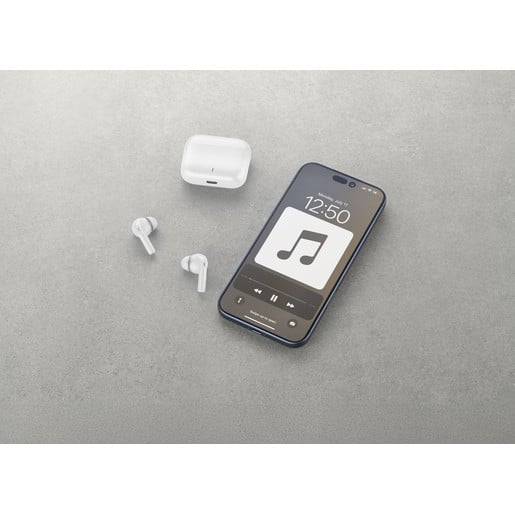 Wavy In-Ear Écouteurs True Wireless avec boîtier de charge, design élégant et distinctif, commandes tactiles et jusqu’à 16 heures d’autonomie totale.