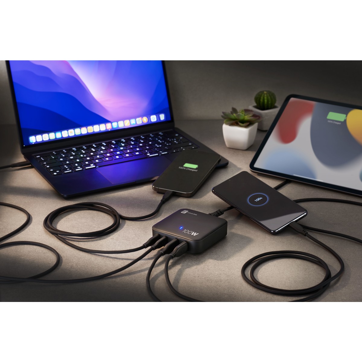MULTIPOWER MAGNUS 100W: le chargeur de secteur à hautes performances de charge, rapide et ultra compact, grâce à la technologie GaN, gage de performances maximales et de dimensions réduites. Il peut charger jusqu’à 4 dispositifs simultanément, idéal pour smartphone, tablette et ordinateur portable. Disponible avec 2ports USB de 18W et 2ports USB-C de 100W.