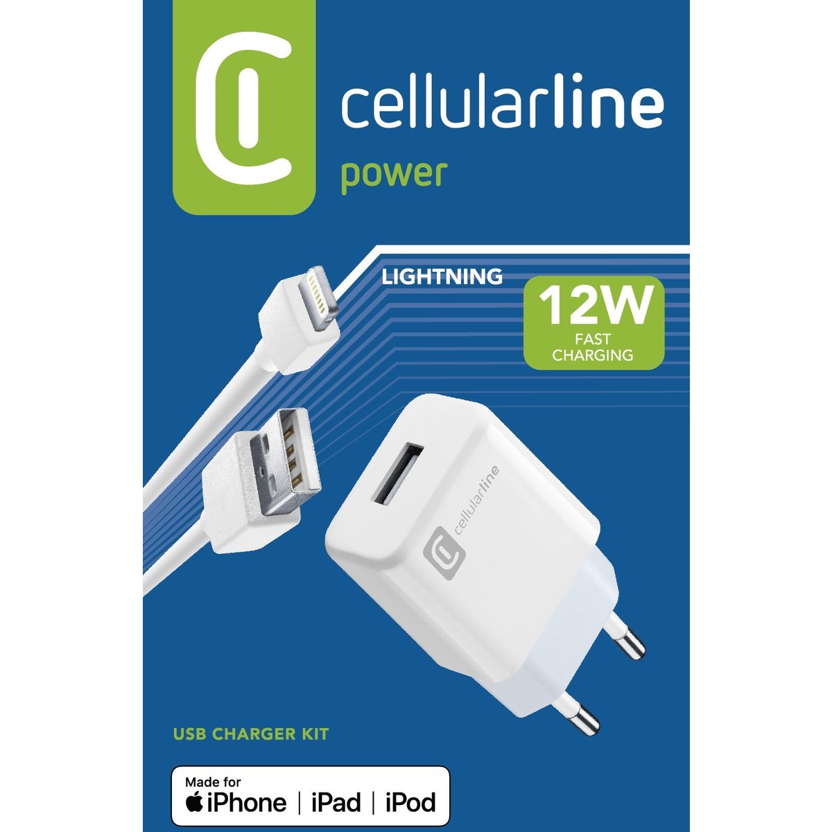 USB CHARGER KIT ULTRA est le chargeur secteur pour dispositifs Apple qui, grâce aux 12W en sortie, permet de charger rapidement et en toute sécurité tous les iPad.Le câble de 100cm USB vers Lightning, fourni, permet la charge et le transfert de données.Il n’existe aucun type d’accord, de licence ou de lien entre CellularlineS.p.A. et les entreprises propriétaires des marques et des noms indiqués dans les textes et sur les images de la présente page Internet. Toutes les marques ainsi que tous les noms et modèles de téléphones portables sont la propriété de leurs titulaires respectifs.