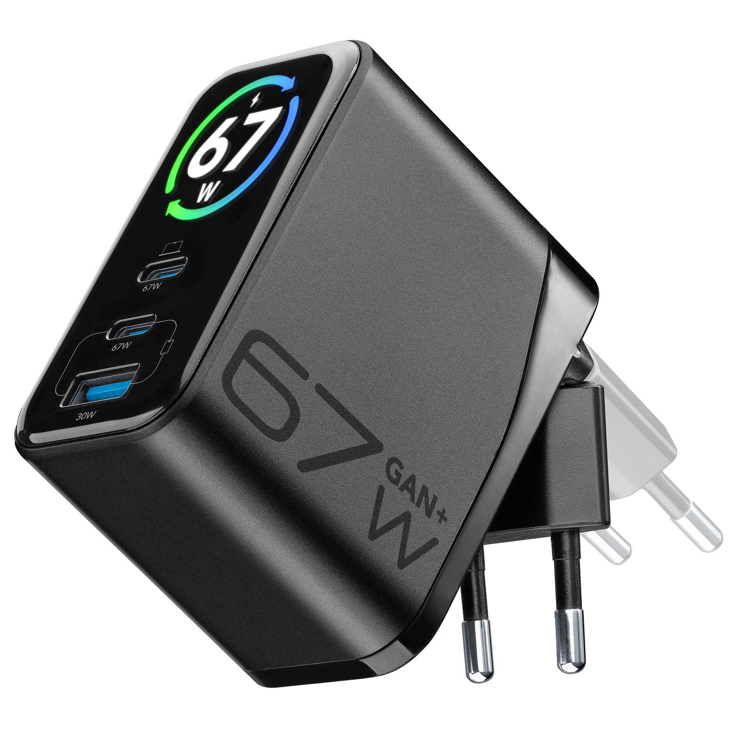 Le chargeur secteur PowerView IQ 67W fait partie de la nouvelle gamme Cellularline dédiée aux hautes performances et au contrôle total. Grâce à l’écran TFT intelligent, il affiche en temps réel les données de charge de chaque port, notamment la puissance délivrée, le wattage et la température, garantissant transparence et suivi continu des performances. Les deux ports USB-C de 67W et le port USB-A de 30W assurent une recharge efficace des smartphones, tablettes et ordinateurs portables. La technologie GaN+ combine puissance élevée et design compact, tandis que la fiche pliable améliore la portabilité et protège le chargeur pendant le transport.