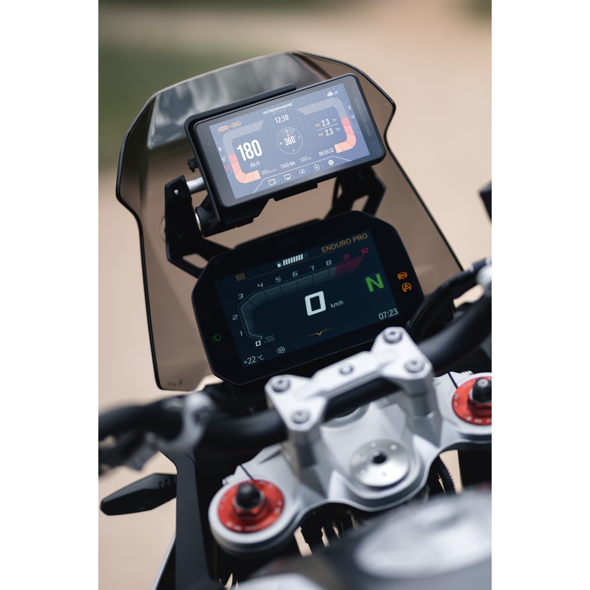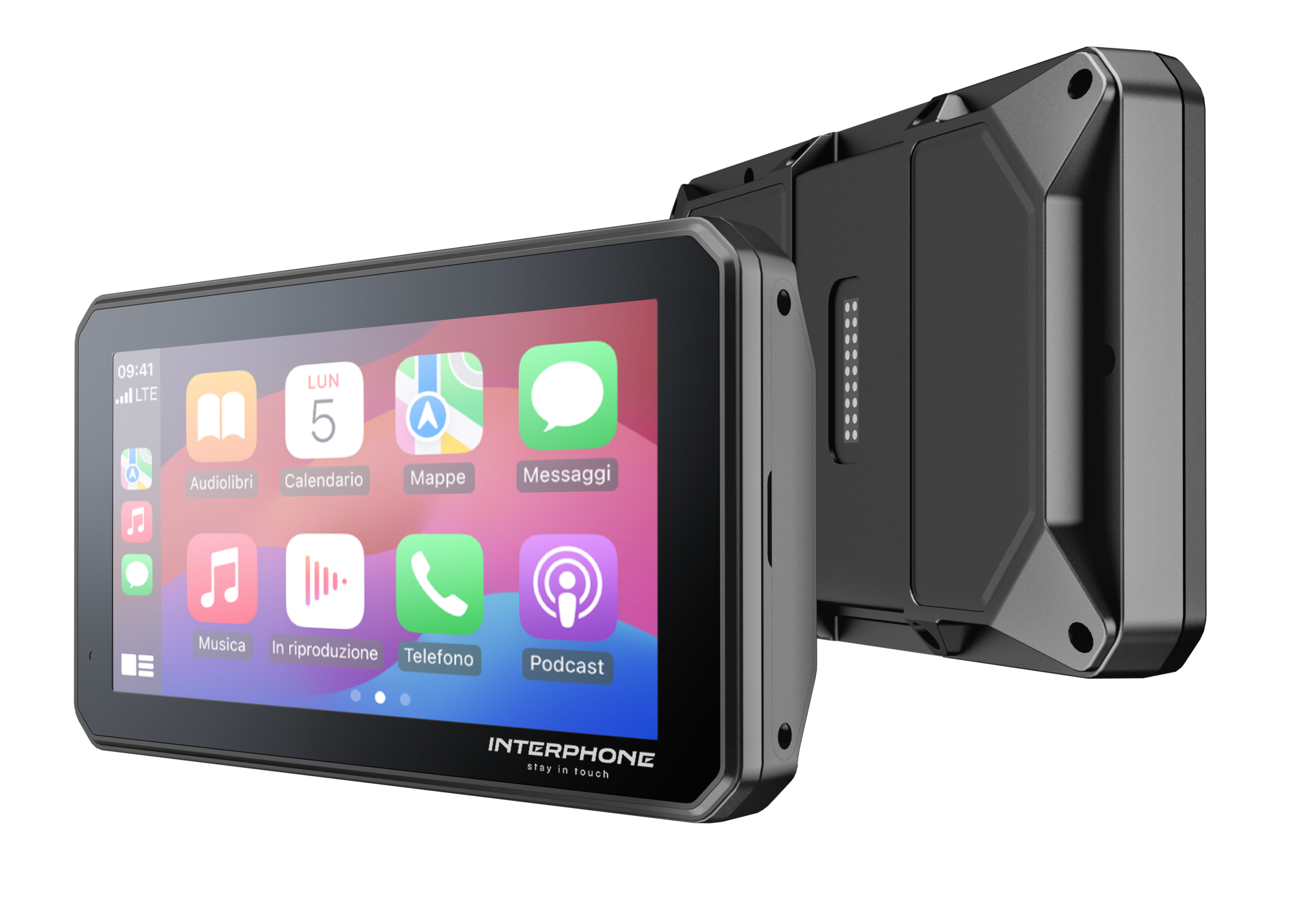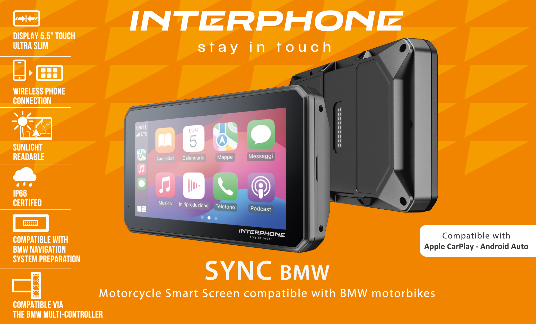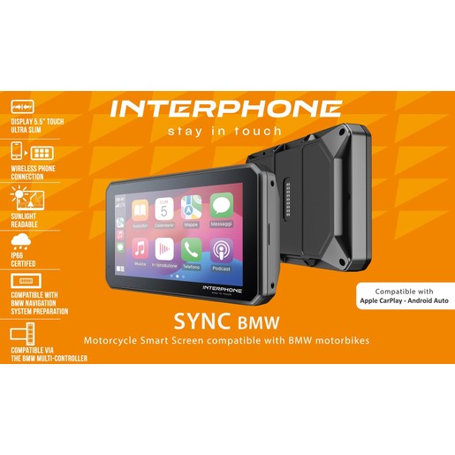 Système d’interphone mobile BMW SYNC 55B avec écran intelligent de 5,5 pouces. Restez connecté pendant vos déplacements grâce à cet appareil innovant, conçu pour s’intégrer sans fil à votre smartphone via CarPlay et Android Auto. Accédez facilement à vos applications et enregistrez des données telles que la vitesse, le kilométrage, la pression des pneus, l’angle d’inclinaison et bien plus encore.