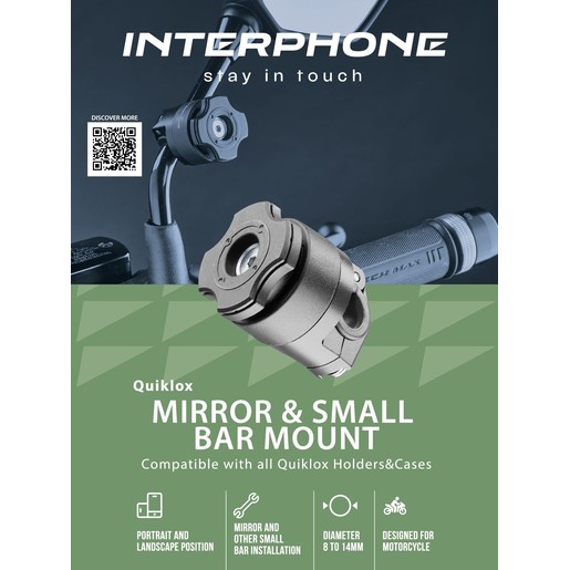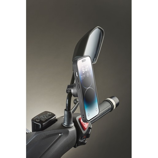 Parfait pour les scooters sans guidon tubulaire et les motos équipées d’un pare-brise. Rotation à 360 degrés. Le smartphone peut être utilisé horizontalement et verticalement. Compatible avec tous les supports de téléphone Quiklox.