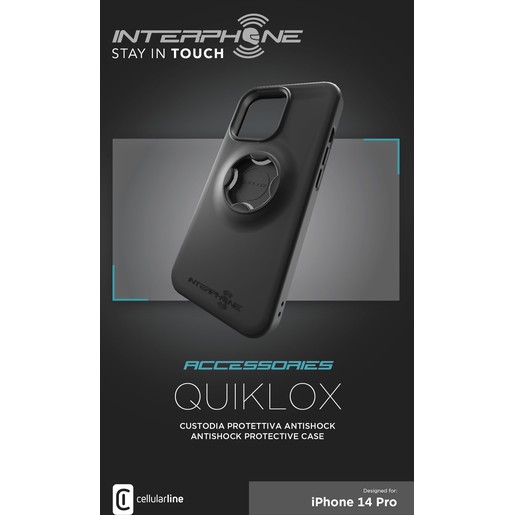 Étui dédié à l’iPhone14 Pro, compatible avec le support Quiklox pour guidon et le support Quiklox pour rétroviseur. Protection totale, tant de l’écran que des coins, contre les chocs et les chutes grâce au design spécial avec des bords surélevés pour une protection frontale élevée et une sécurité maximale grâce à la sangle anti-perte incluse dans l’emballage. Elégante et résistante en TPU, elle est parfaite pour la moto et l’usage quotidien et grâce à l’extrême praticité de l’attache rapide, son utilisation sera simple et rapide. Votre smartphone sera toujours en sécurité.