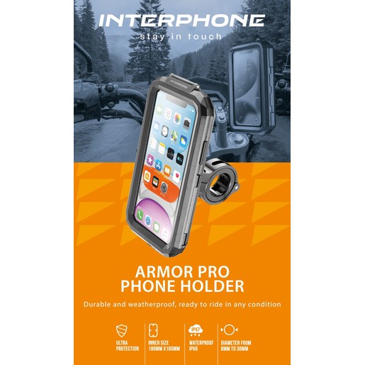 Armorpro est la nouvelle armure solide et durable pour votre téléphone. Fixez votre smartphone au guidon de votre moto pour une protection maximale contre les chocs, les chutes et les intempéries. Utilisez-le également avec le câble de charge branché, pour que votre appareil reste chargé même lorsque vous êtes en déplacement. Le support en aluminium a des dimensions compactes et offre la possibilité d’être monté sur des diamètres de 12 à 30 mm pour un plus grand choix d’installation.