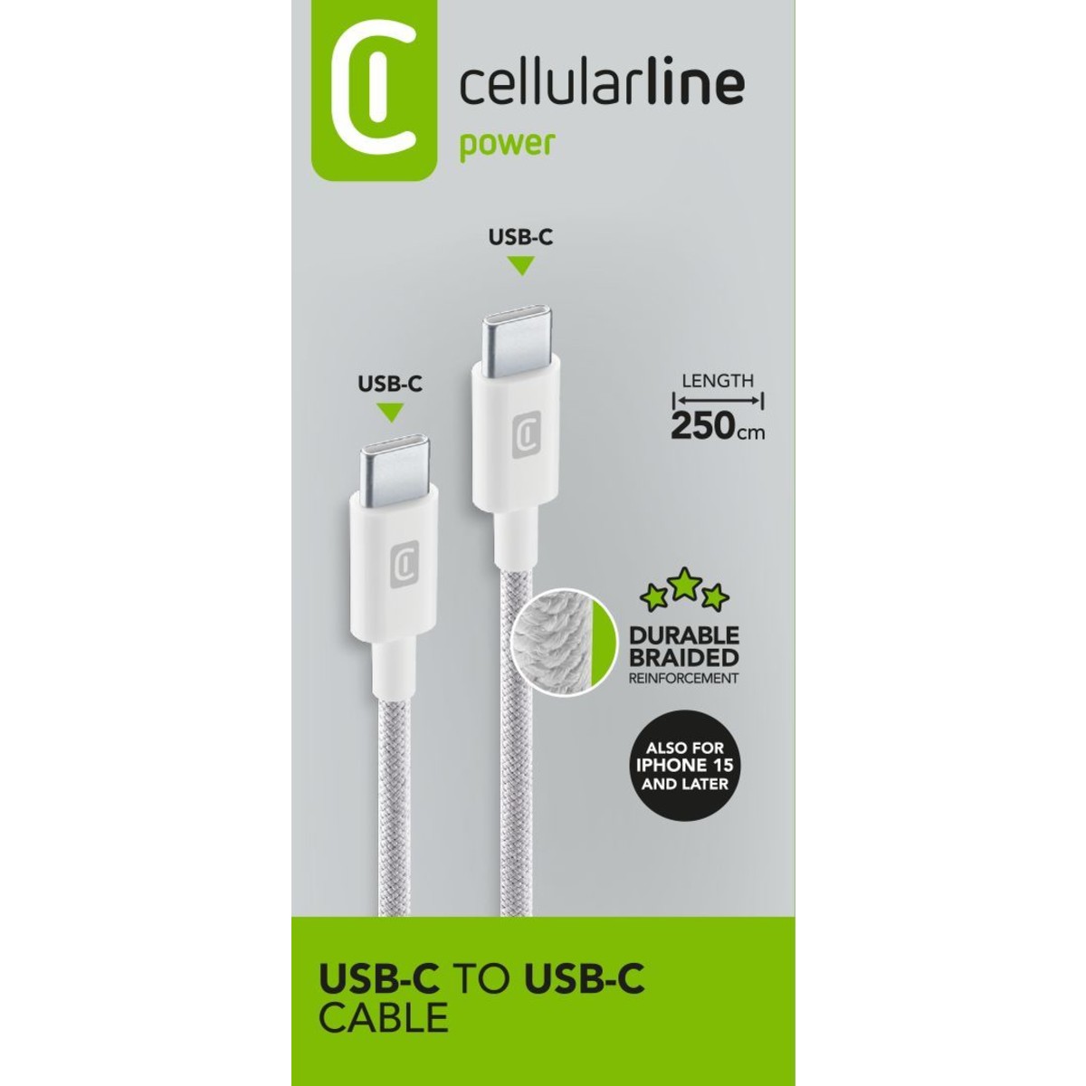 Geflochtenes Kabel 250 cm – USB-C zu USB-C