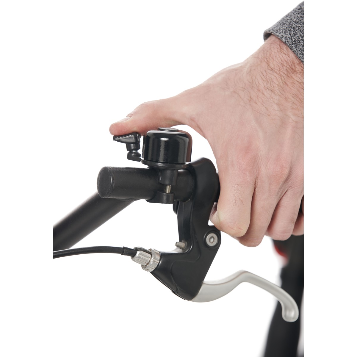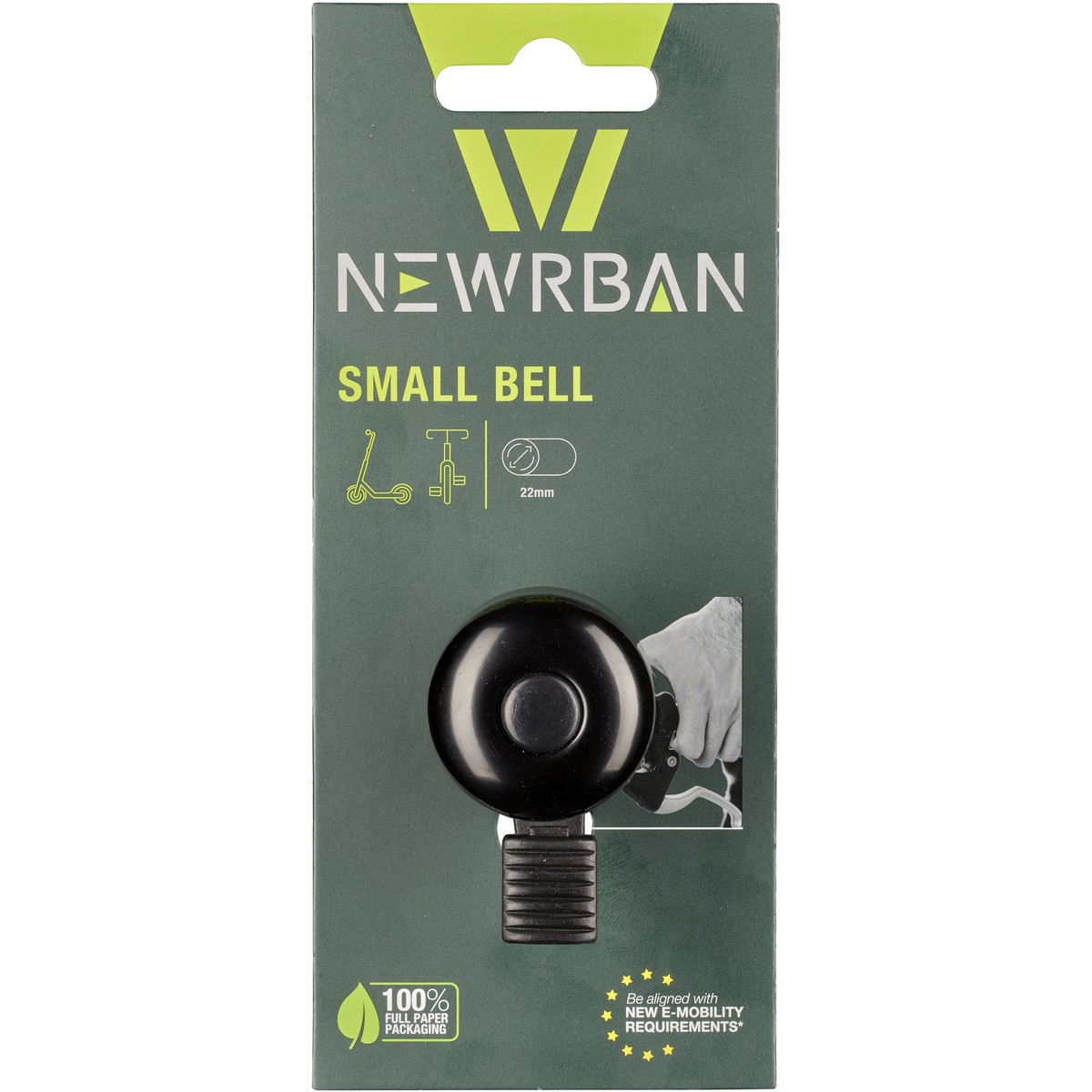 Bell ideal for bikes and e-scooters, compatible with handlebars with a 22 mm diameter. The bell has the following dimensions: 5.5 x 3.5 x 4cm (L x H x D) Made from steel and plastic and available in black.