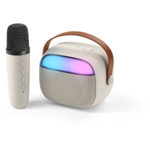 SUPERSTAR is the microphone speaker that allows you to listen to music and amplify your voice via Bluetooth connection. It comes with 4 voice effects to change your voice while you sing and have fun, and built-in RGB lights to set the right mood for your party. SUPERSTAR has 8H of playtime, so you can sing along and listen to your favourite playlist uninterruptedly.