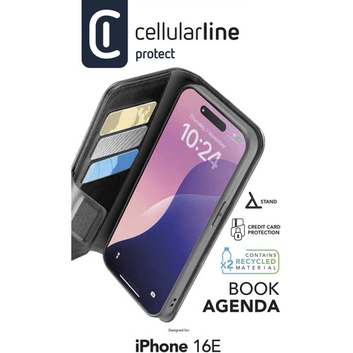 Book Agenda est un étui au format livre présentant une fermeture magnétique et une finition effet cuir, fonctionnel et élégant. Il est doté de poches porte-cartes pratiques affichant la technologie « RFID & NFC Block », qui empêche la lecture non autorisée des cartes sans contact. La fonction de support permet de faire des appels vidéo ou de regarder confortablement des vidéos.