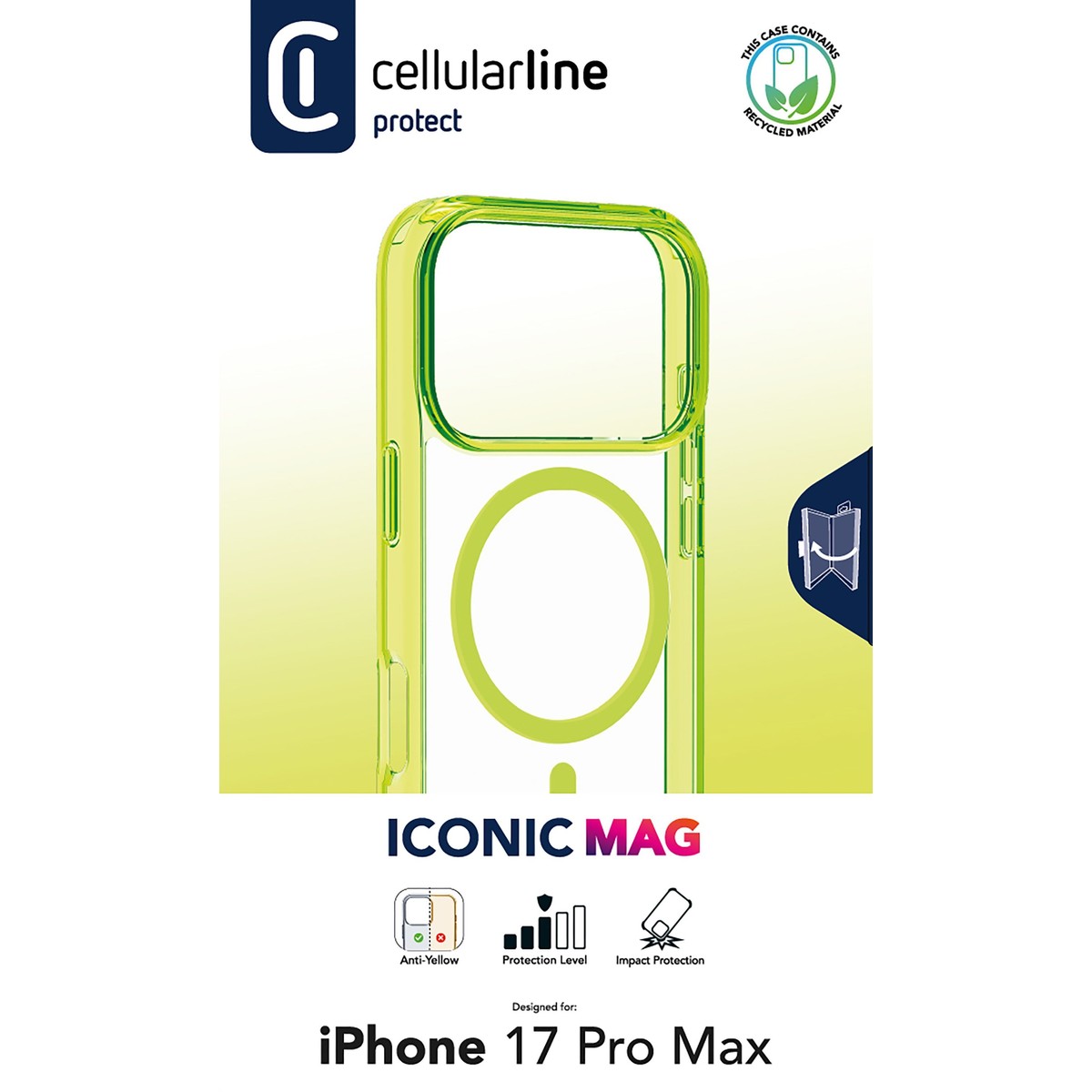 ICONIC MAG est une coque qui combine couleur et transparence, conçue pour interagir parfaitement avec l’écosystème MagSafe®. Grâce aux aimants intégrés, la coque s’aligne avec le téléphone assurant une compatibilité optimale avec tous les accessoires magnétiques MagSafe. Les bords colorés semi-transparents combinés avec l’aimant de couleur pleine ajoutent une touche de style, tandis que la structure à double matériau offre une plus grande protection pour les bords et les connecteurs. Les bords surélevés dans la zone de la caméra et de l’écran garantissent une protection supplémentaire contre les chocs et les rayures. Avec ICONIC MAG, votre téléphone est protégé et toujours prêt à être utilisé avec l’écosystème MagSafe.