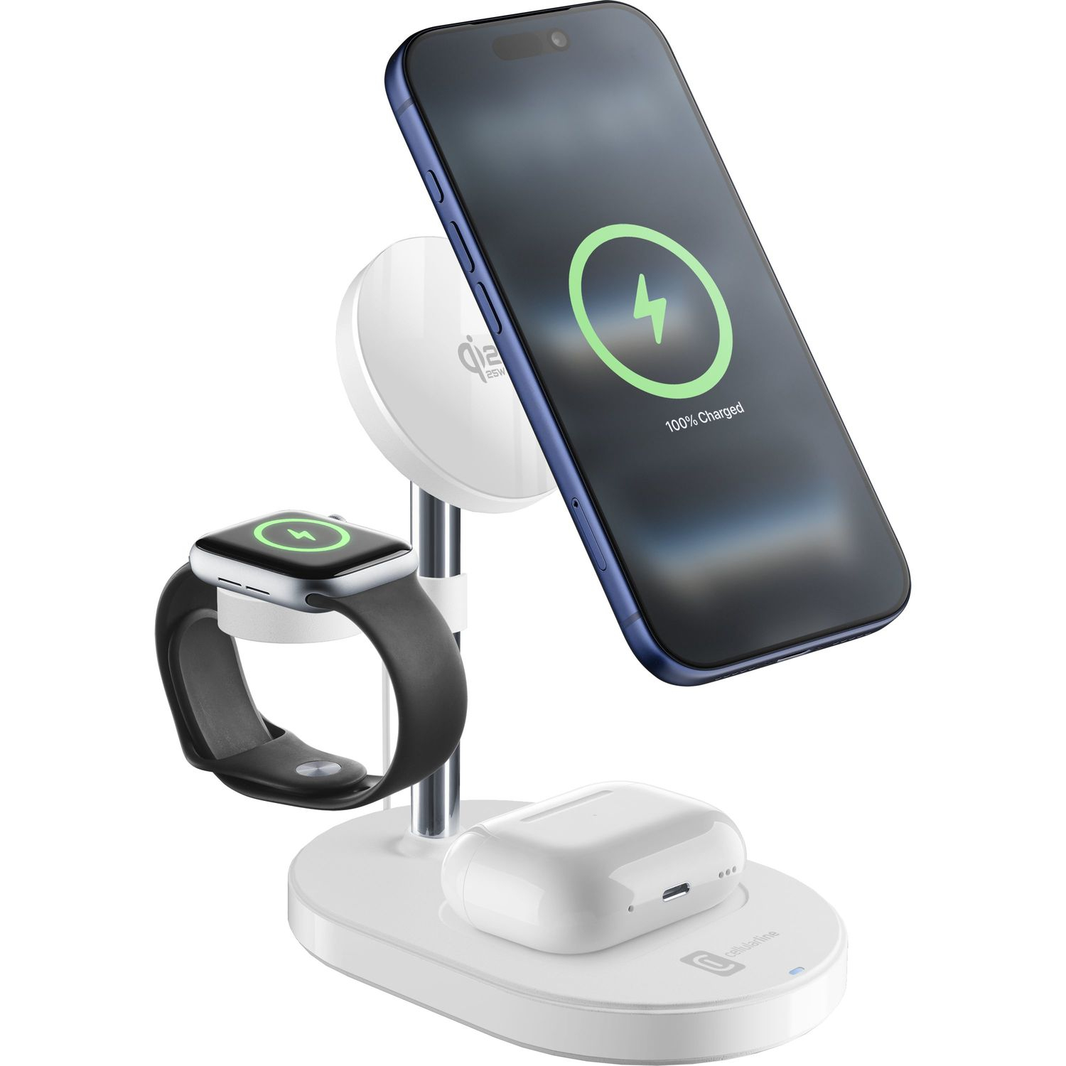 MAG TRIO 3en1 est la station de charge sans fil certifiée Qi2.2 25W, idéale pour recharger jusqu’à trois appareils simultanément.Elle recharge les smartphones jusqu’à 25W, les écouteurs sans fil jusqu’à 5W et les montres connectées via un emplacement dédié pour Apple Watch ou Samsung Watch (câble non inclus).Dotée d’un alignement magnétique parfait, elle est compatible avec tous les appareils sans fil, même sans aimant intégré, grâce à une coque ou un anneau magnétique.Câble USB-C de 150 cm et adaptateur secteur 45W inclus pour une expérience de charge complète et bien organisée.Recharge les appareils Apple jusqu’à 4 fois plus vite qu’un chargeur magnétique standard de 7,5W.
